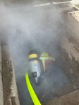 Treppenhäusern, Personensuche bei Null Sicht und der Gebrauch einer "Rettungstrupptasche" geübt. Auch wurde der Bau eines "Schlauchpaketes" probiert und auch eingesetzt.