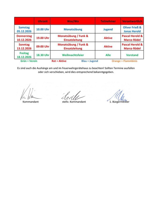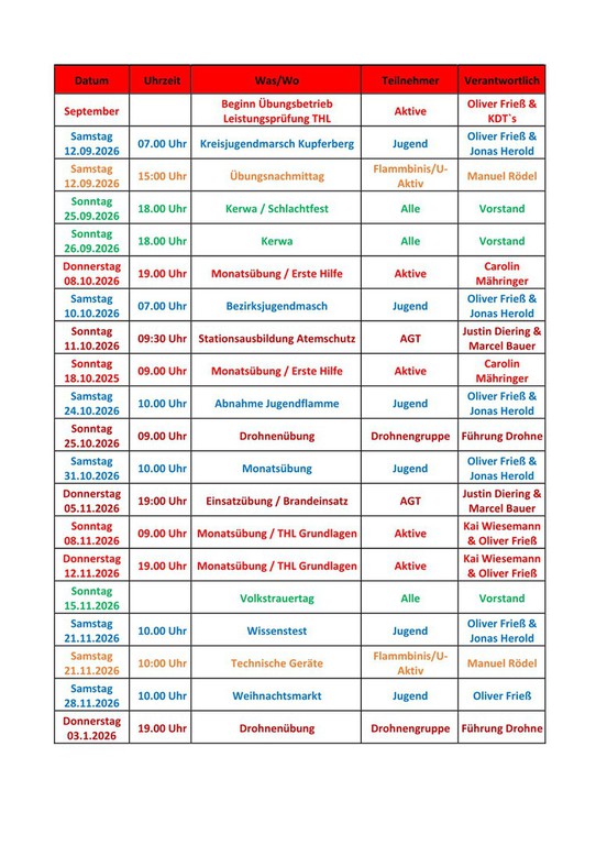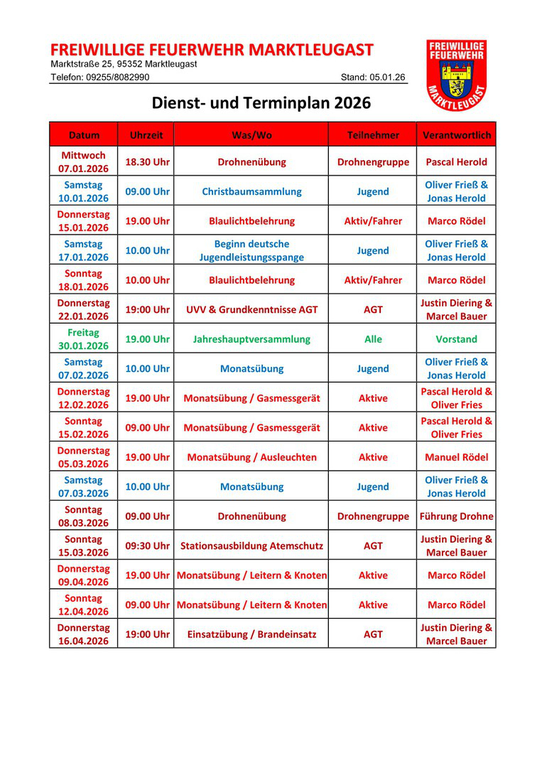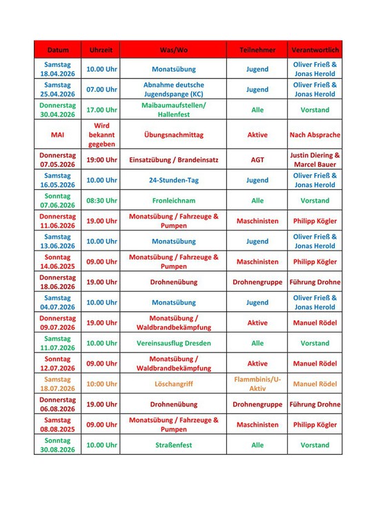 Download des Dienst- und Terminplans 2025 als PDF-Dokument!